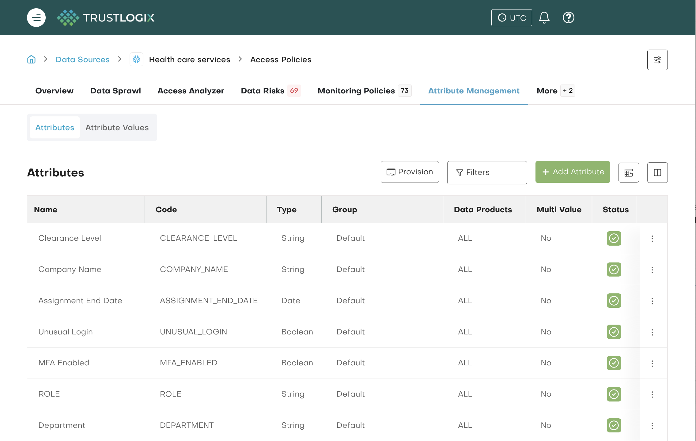 - Access controls: Leverage role-based and/or attribute-based policies to grant approved access at appropriate levels. Manage user attributes - Define attributes applicable for products in the domain, department, project, location, and purpose that determine access needs and scoping.